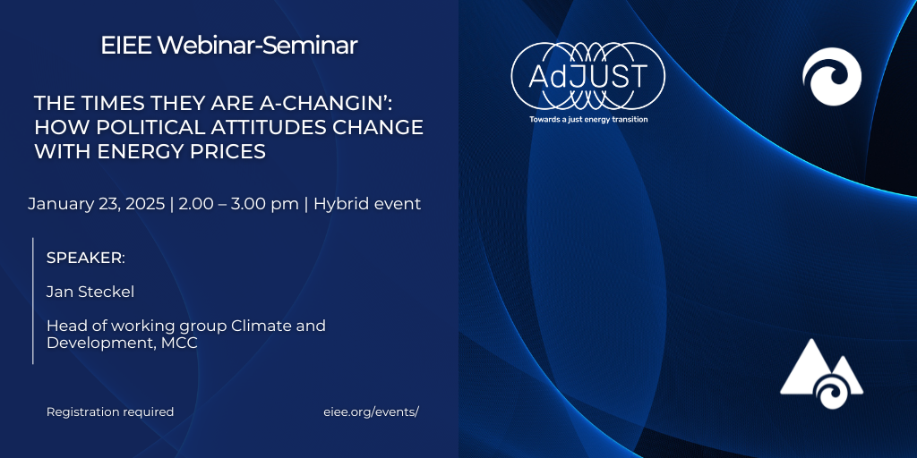 Abstract: We study the impact of the 2022-2023 energy crisis in Germany on political  attitudes. We collect 4 waves of panel data to measure how political stances change with increasing energy prices for households. Our difference-in-differences estimation exploits unique features of the German energy sector’s billing routines, which allows for a quasi-experimental design. We show that increases in electricity payments lead to a decline in support for democratic institutions, with effects intensifying over time. We also find that the price shock increased support for the far-right populist party among people who have little trust in the responsible use of public money.