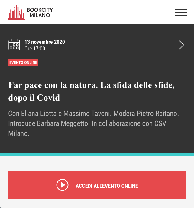 Maggiori info: https://bookcitymilano.it/eventi/2020/far-pace-con-la-natura-la-sfida-delle-sfide-dopo-il-covid