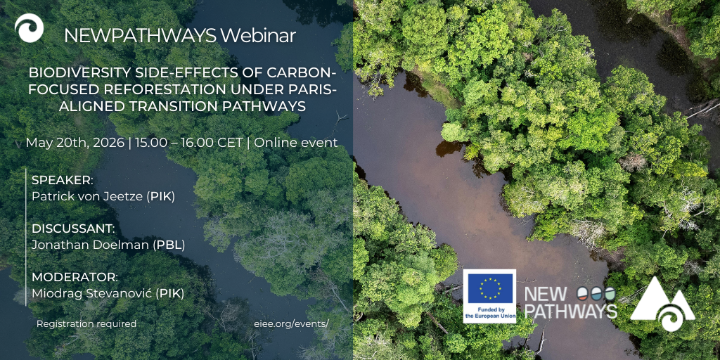 Abstract: Large-scale afforestation/reforestation (AR) is often promoted as a cost-effective way to remove carbon from the atmosphere and support Paris-aligned land and energy transformation pathways. Using a dynamic land and energy-system modelling approach, we find that while stringent climate action that avoids further conversion of forest and non-forest ecosystems offers substantial biodiversity co-benefits by reducing habitat loss, these benefits are largely offset at high levels of carbon-focused AR (>150 Mha) because of increasing, disproportionate losses of open, non-forest habitats. Notably, the results also show that the scale of AR deployment has little effect on energy-system transformations before 2050 and only limited influence on long-term emissions. These results highlight the varied and species-specific biodiversity consequences of land-system transformations and that rapid near-term emission reductions remain essential for achieving the targets of the Paris agreement.